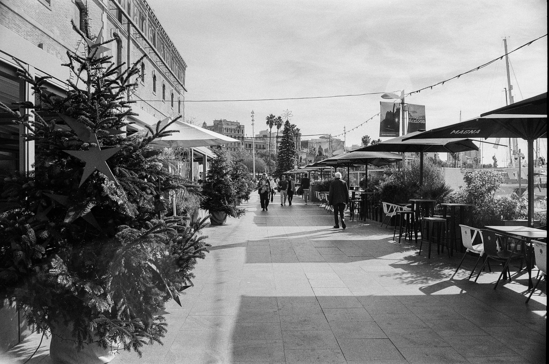 In Barceloneta, the space opens up: yachts in the port, sea air, soft sunlight and calm rhythms.