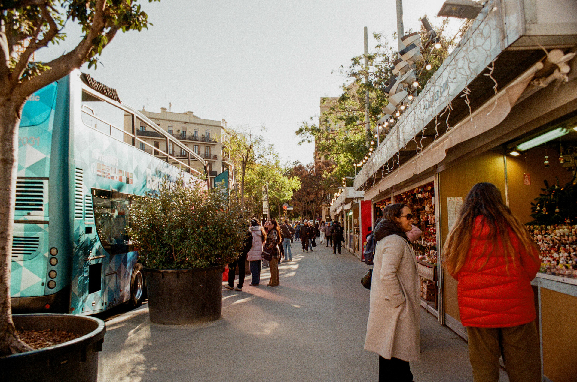 The Gothic Quarter tells a different story. Narrow streets, stone walls, deep shadows and sudden light breaks create a cinematic atmosphere.